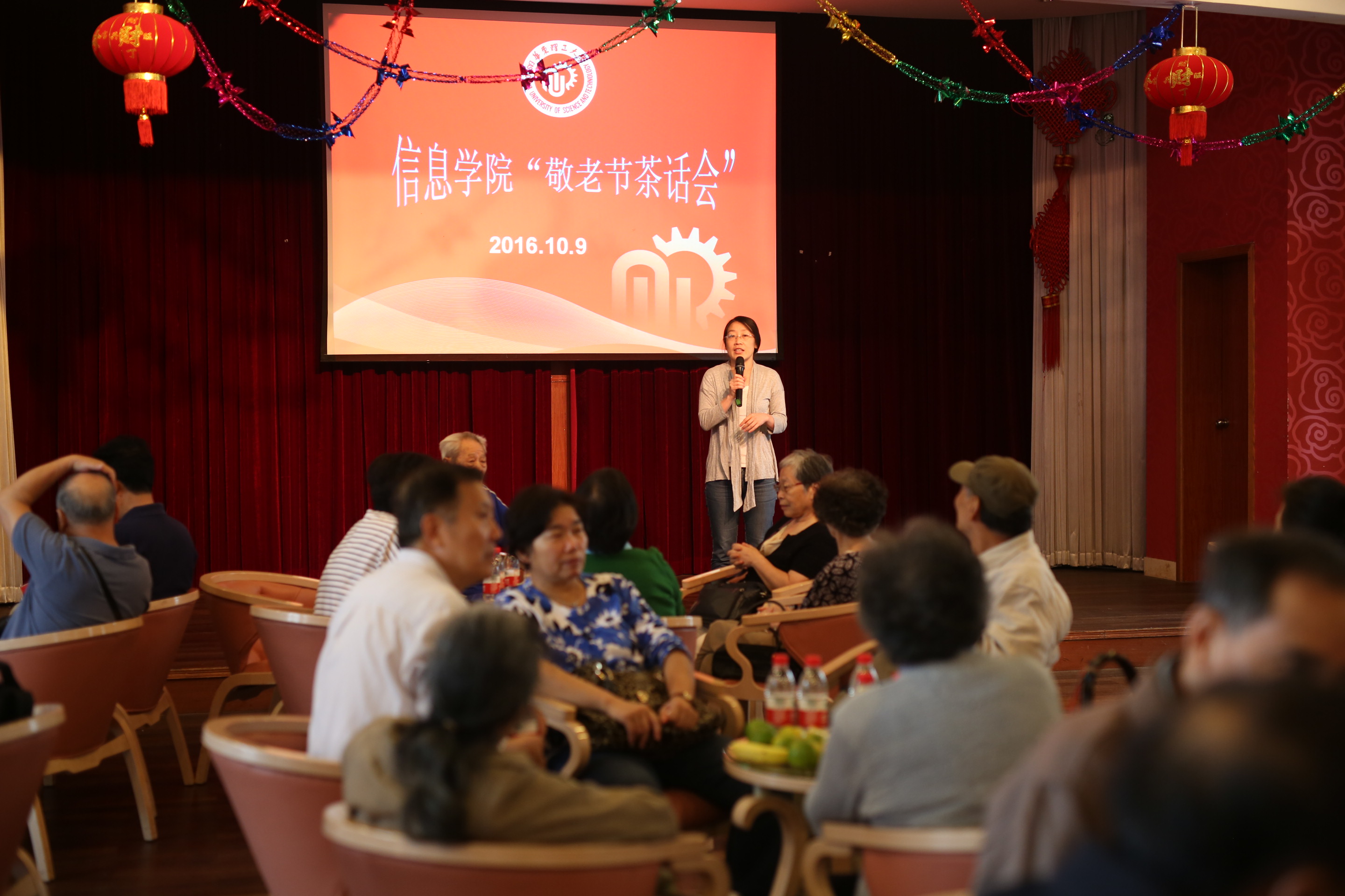 金秋送爽,金桂飘香。 2016年10月9号,太阳成集团tyc122cc举行了“敬老节茶话会”,庆祝第28个敬老节的到来。会议邀请了70多位退休老教授、老教师“回娘家”,公司党委书记侍洪波教授、经理杜文莉教授、副经理虞慧群教授及各系(中心)主任、办公室主任、工会主席、工会委员、部门工会组长及办公室工作人员等参加了茶话会。