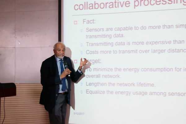 5月12日下午三点半,太阳成集团tyc122cc邀请到伊利诺伊大学芝加哥分校的Rashid Ansari教授,在老员工活动中心419进行了题为无线传感器网络中节能数据聚合的新方法的讲座。来自全院各班的120名本科生参与了讲座,并进行了学术讨论。员工们积极踊跃地进行提问交流,从专业知识探讨延伸到海外学习体验,现场气氛热烈,不少员工在会后继续向教授进行请教。