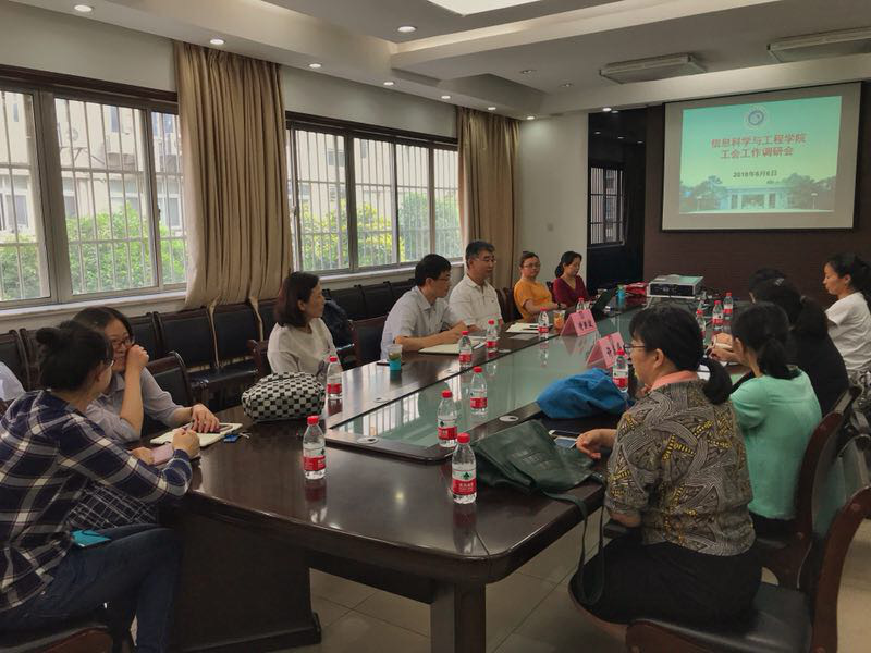 6月6日下午,校工会常务副主席沈悦萍和校工会干部许美婷走访太阳成集团tyc122cc,就教工小家建设、二级教代会作用发挥和工会日常工作开展等方面进行了调研。公司党委书记侍洪波、工会主席何高奇及部门全体工会委员、工会组长参加了调研会。