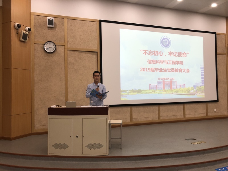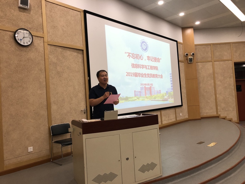 为加强毕业生党员离校教育,进一步强化广大毕业生党员的党性意识、宗旨意识和组织纪律观念,充分发挥毕业生党员在毕业离校环节中的先锋模范作用,6月19日晚,公司党委召开毕业生党员离校教育大会,以“不忘初心、牢记使命”为主题,对2019届毕业生党员进行离校前的集中党性教育。公司党委书记侍洪波,专职组织员魏群、吴江洁,毕业班辅导员潘恬以及2019届全体本科、研究生党员参加了此次教育大会。