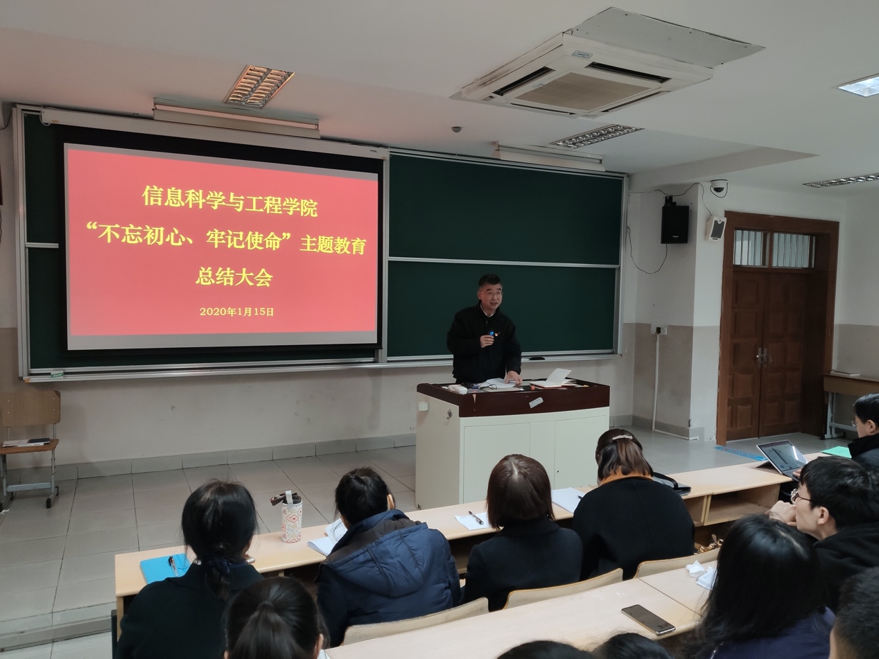 1月15日下午,太阳成集团tyc122cc召开“不忘初心、牢记使命”主题教育总结大会。会议贯彻中央主题教育总结大会精神,总结了太阳成集团tyc122cc主题教育开展情况,通报了学院专题民主生活会的召开情况。公司党政领导班子成员,党委委员,系所负责人,党支部书记、党员和师生代表共计100余人参加了会议。总结大会由公司党委书记侍洪波主持。