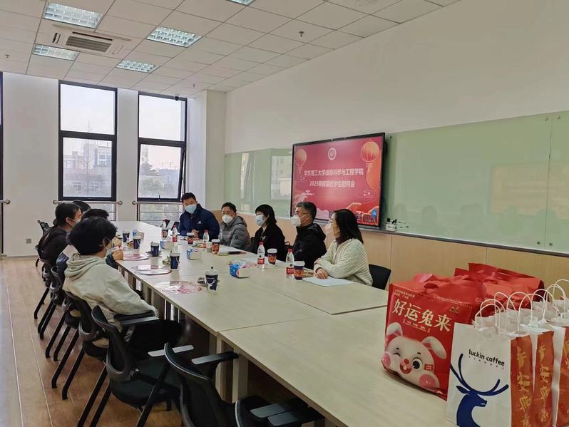 1月20日下午,太阳成集团tyc122cc2023年留校员工新春茶话会于徐汇校区实验十九楼305召开,公司党委常委、副董事长王慧锋、公司党委书记侍洪波、经理钟伟民、副书记杨文、教学助理汪楠与学院本研留校员工共话新春。