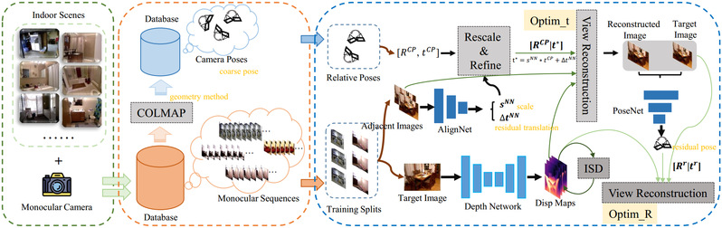 针对室内场景自监督单目深度估计中帧间大旋转和低纹理所带来的挑战,研究团队在论文“GasMono:室内场景的几何辅助自监督单目深度估计”中创新地提出了通过多视角几何从单眼序列中获取粗相机姿态,并将视觉变换的全局推理与一种感知过拟合的迭代自蒸馏机制结合起来,提供来自网络本身的更准确的深度引导。此外,受训练数据集中不同场景的尺度模糊性的限制,引入的几何粗糙姿态无法保障性能的提升。为了解决这个问题,研究团队提议在训练过程中通过旋转和平移/尺度优化来改进这些姿态。这项研究成果为室内自监督单目深度估计设定了新的水平,在NYUv2, ScanNet, 7scenes和KITTI数据集上有出色的泛化能力。