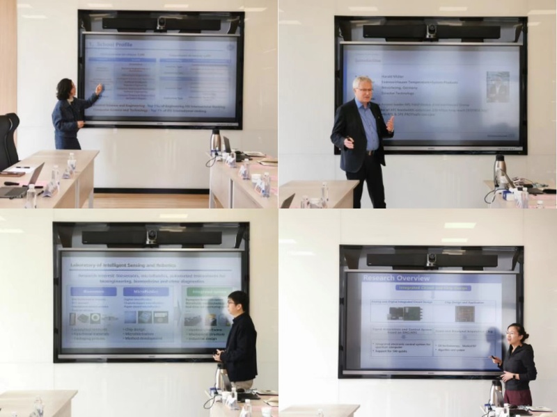 4月10日上午,恩德斯豪斯温度仪表有限公司研发总监Harald Mueller,运营经理王文成,业务发展经理傅振铎一行来公司访问交流。公司党委书记侍洪波、党委副书记许浩、学院助理卢静宜及教师代表等参加座谈交流。