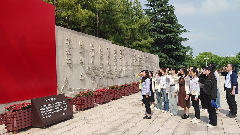 随后,团队一行来到南湖革命纪念馆的宣誓墙前,面向鲜红的党旗,在公司党委副书记许浩的带领下,庄严郑重地重温了入党誓词。铿锵有力的誓词,让大家再次深刻体会到作为一名新时代的党员所肩负的使命和责任。