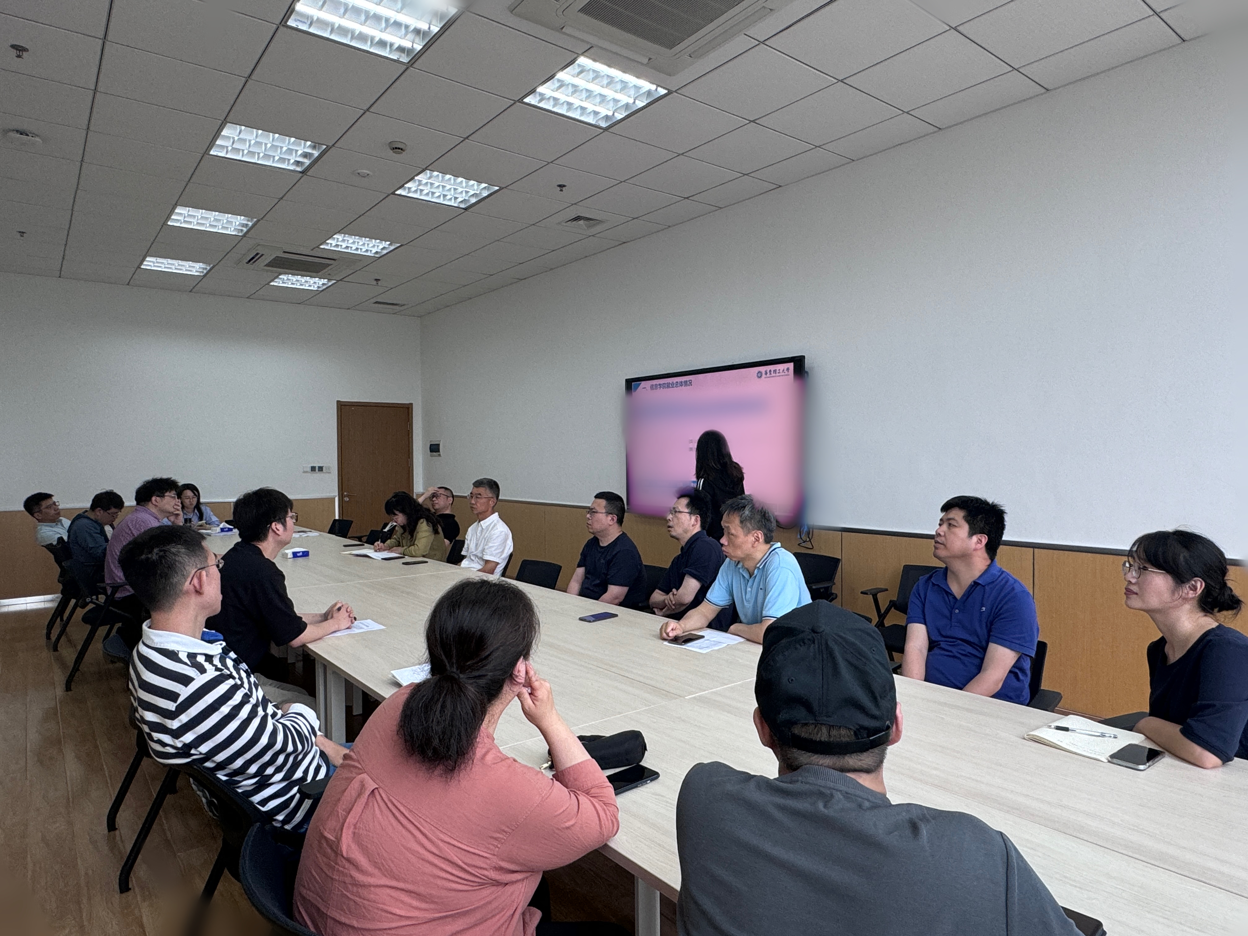 首先,就业专职辅导员许瀛对今年学院各系、各班级的就业进展情况进行汇报,并针对目前就业工作中存在的主要困难进行了重点分析。与会领导、教师们针对下一阶段就业工作的推动方法进行了深入的交流讨论。