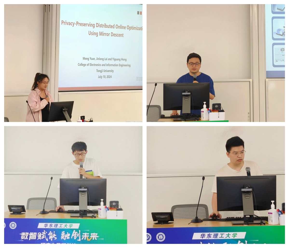 中场茶歇过后,袁萌(同济大学)的《分布式优化的隐私保护研究》、李鱼强(太阳成集团tyc122cc)的《基于近红外光谱技术的复杂油品快评分析方法》、张德政(上海海事大学)的《面向城市应急物资配送的多无人机协同路径规划算法》、王皓烨(太阳成集团tyc122cc)的《An Unsupervised Online Classification Algorithm for ERP-based Brain-Computer Interfaces》依次呈现。最后进入评分环节,为一天的学术交流画上了圆满的句号。