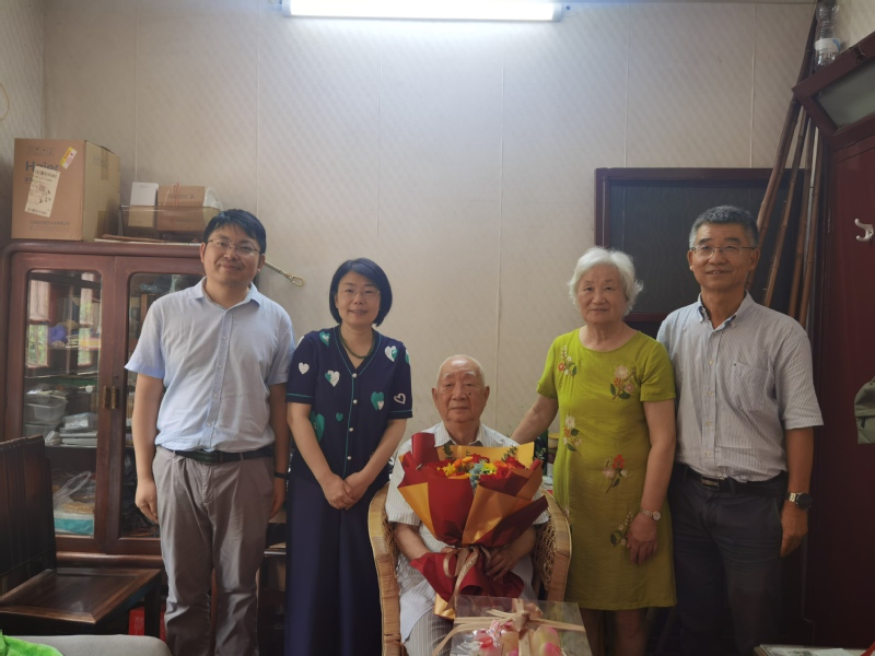 7月19日上午,公司党委书记侍洪波和公司党委统战部常务副部长张雪芹等一行人,来到学院退休教师、民盟盟员张南教授家中为其庆祝百岁生日,电信系主任姜庆超、退休教师支部书记吴孟奋,以及教师代表陈维槎、高言、张万顺和宋继荣一起参加慰问。