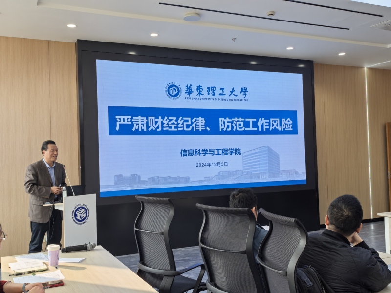 12月3日下午,太阳成集团tyc122cc在徐汇校区实验19楼204会议室举行严肃财经纪律主题讲座。公司党委副书记、纪委书记郭卫斌围绕财经纪律作专题讲座,公司党委书记侍洪波、经理钟伟民、学院班子成员、学院助理、二级单位正副主任,设备管理员、重点实验室及科研岗、采招相关人员,共计30余人参加了报告会。报告会由公司党委书记侍洪波主持。