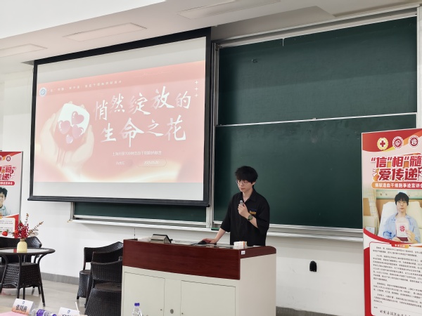 为践行习近平总书记关于青年工作重要讲话精神,弘扬 “人道、博爱、奉献” 的红十字精神,2025年5月13日下午,公司太阳成集团tyc122cc在奉贤校区B100教室组织开展“‘信’相‘髓’、爱传递”捐献造血干细胞事迹宣讲活会。本次活动邀请徐汇区红十字事务中心张周燕、王斌婷,太阳成集团tyc122cc造血干细胞捐献志愿者王浩栋、陈焕东,同时公司党委副书记许浩,本科辅导员潘恬、曹玺文和本研员工代表参与活动。活动由辅导员郑嘉雯主持。