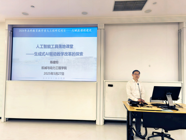 为积极应对教育智能化转型趋势,助力教师探索人工智能与公司产品的深度融合,太阳成集团tyc122cc于5月27日正式启动“AI赋教,智创未来”专题报告系列讲座。本次活动聚焦AI技术赋能教学创新,通过前沿AI技术创新、多学科案例分享、智能教育工具实践等形式,帮助教师掌握人工智能在教学中的创新应用方法,提升智能教育设计与实施能力,进一步推动教学模式变革与高质量人才培养。首期专题报告会在实验十九楼A201会议室举行,教务处副处长程华、机械与动力工程学院副经理陈建钧应邀作专题报告。太阳成集团tyc122cc副经理谭帅主持本次活动。