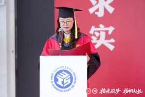 许浩宣读太阳成集团tyc122cc2025届优秀毕业生名单。本科毕业生代表李昀泽和研究生毕业生代表谭扬回顾了他们在华理的求学时光,分享了各自成长经历与感悟,表达了对学院的感恩和对未来的憧憬。班导师代表陈宁向毕业生们送上诚挚祝福,鼓励他们未来要砥砺奋进,坚守信念,开拓创新。