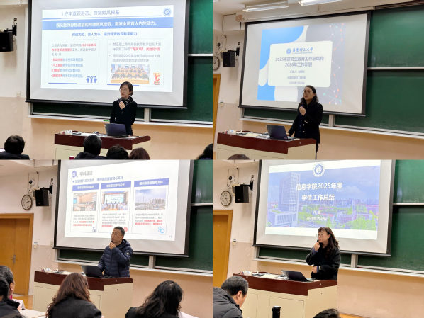会上,学院经理钟伟民,副经理和望利、谭帅,副书记许浩,分别围绕“科研和学科工作”“研究生公司产品工作”“本科公司产品工作”和“员工工作”作专题汇报,系统回顾了2025年取得的主要成绩,结合学科专业数据资源建设深入剖析当前存在问题,并结合“十五五”规划明确了2026年的工作重点。